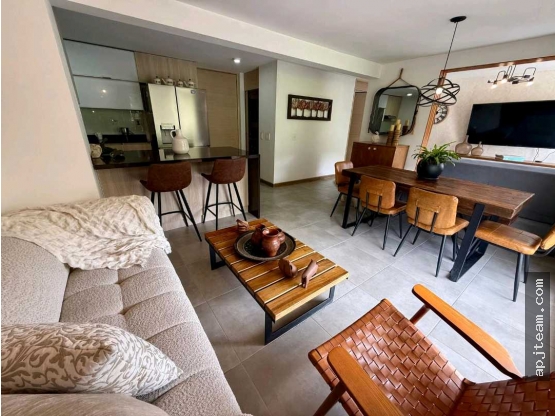 Apartamento Loma de los Bernal, 97mt², piso medio, balcón panorámico con vista exterior a zona verde, 3 habitaciones, principal con vestier y baño, baño social, parqueadero y útil.